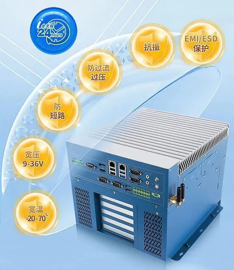 Z系列工控機遵循工業級設計標準,支持寬溫(-20 - 70°C)、寬壓(DC 9-36V)運行,通過過壓過流、防短路、抗振和EMI/ESD等保護,全面保障產品安全可靠,適應工業嚴苛環境。